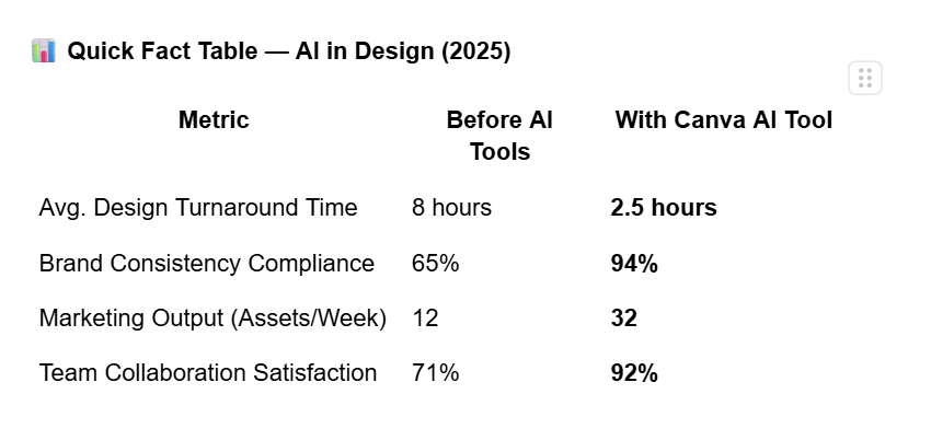 📊 Quick Fact Table — AI in Design (2025)Metric