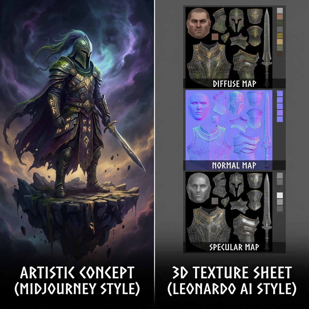 The fan-out query Midjourney vs Leonardo AI for 3D texture generation is a critical differentiator for game developers and 3D artists.