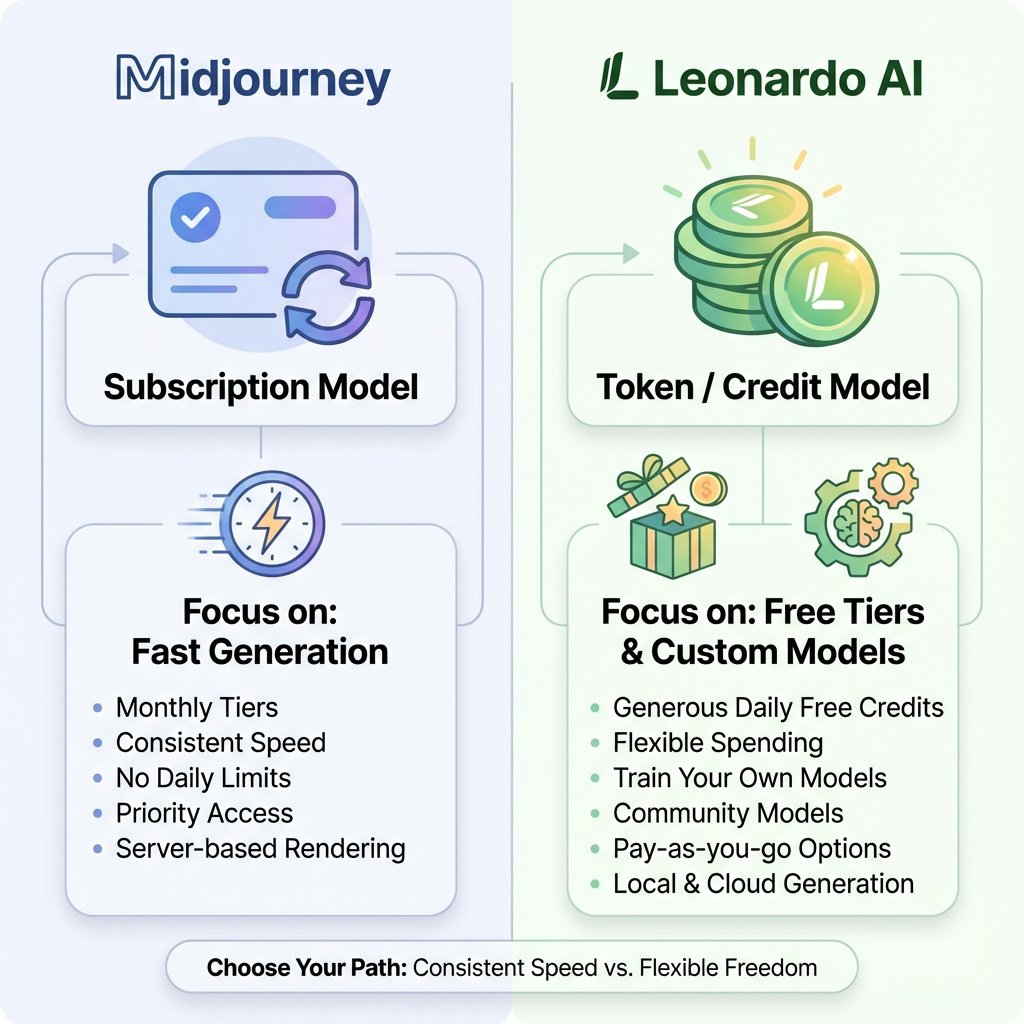 The fan-out query Midjourney vs Leonardo AI pricing and free tiers is a major consideration for indie developers and small studios.