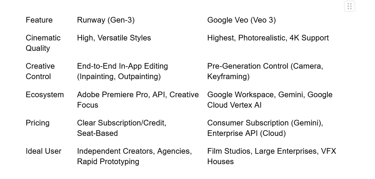 The comparison of Runway vs Google Veo reveals a complementary relationship rather than a zero-sum competition.