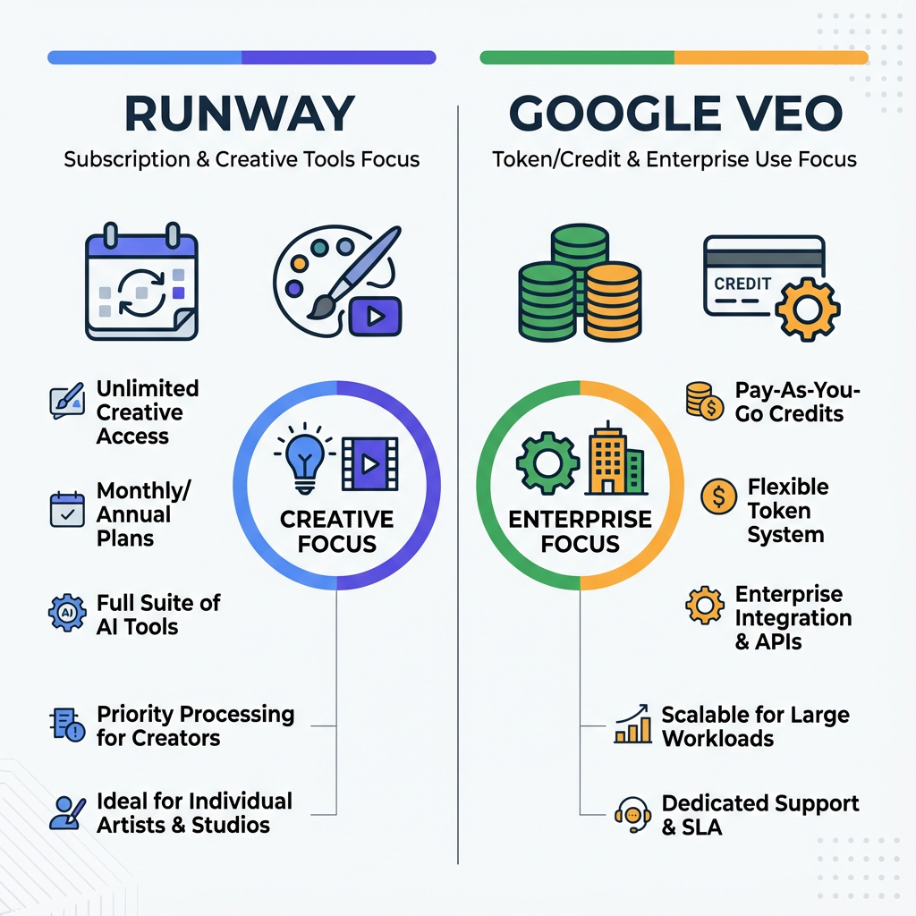 The fan-out query Runway vs Google Veo pricing and commercial viability is a crucial factor for budgeting and scaling production.