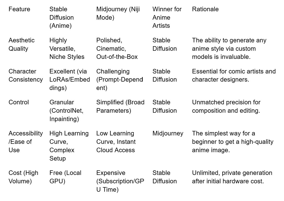 The choice between Stable Diffusion vs Midjourney for Anime is not a matter of which is objectively "better," but which is better for your specific workflow and goals.